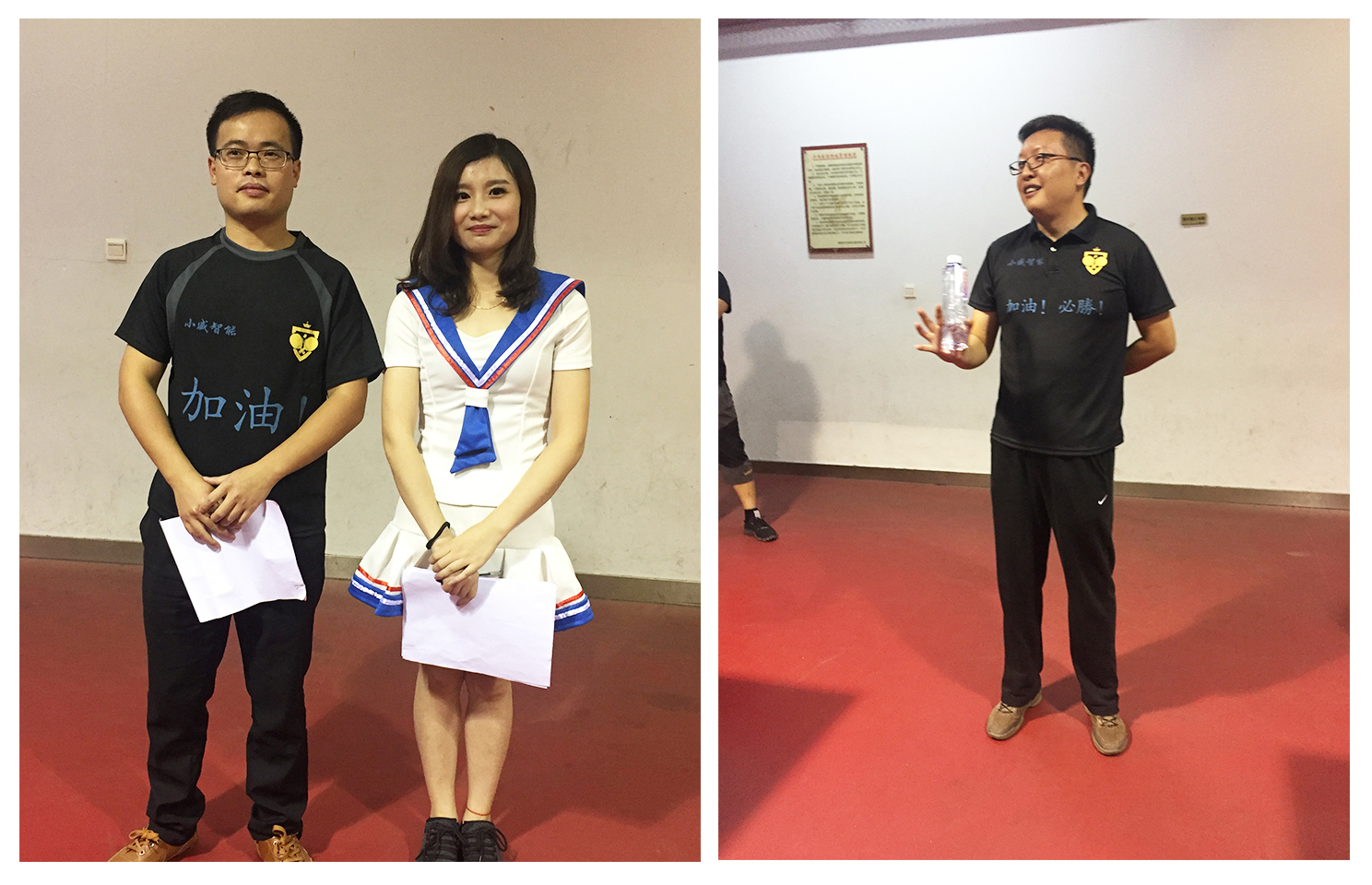 本次比賽的主持人——來自欣威視通的章龍潭和陳樹蓉,俊男靚女的完美組合。欣威視通大BOSS也進行了震撼人心的演講,“小威智能杯”乒乓球爭霸賽正式拉開帷幕。