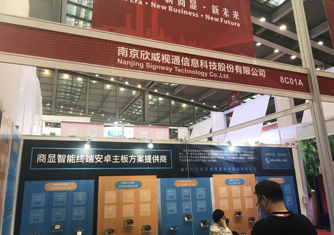 2018年12月5日,智慧商顯系統產業應用博覽會在深圳隆重召開,全展會吸引了各商顯行業的高精尖技術展品,包括智慧商顯、數字標牌、LED顯示、智慧零售等新商顯智能板塊。欣威視通作為商顯智能終端安卓主板方案提供商,攜帶了全系列的安卓智能主板和高清播放盒參與本次展會。