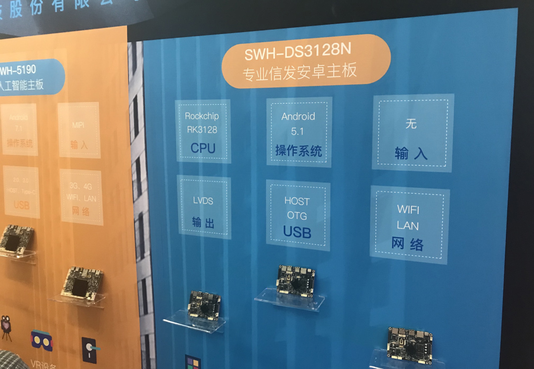 欣威視通緊跟時代的腳步,在原數字標牌的基礎上,推出了應用于智能終端的商顯主板方案。多款安卓智能主板和播放盒參與現場展出,同時推出新款的經典信發小板SWH-DS3128N。