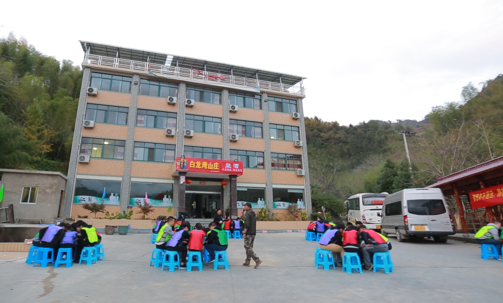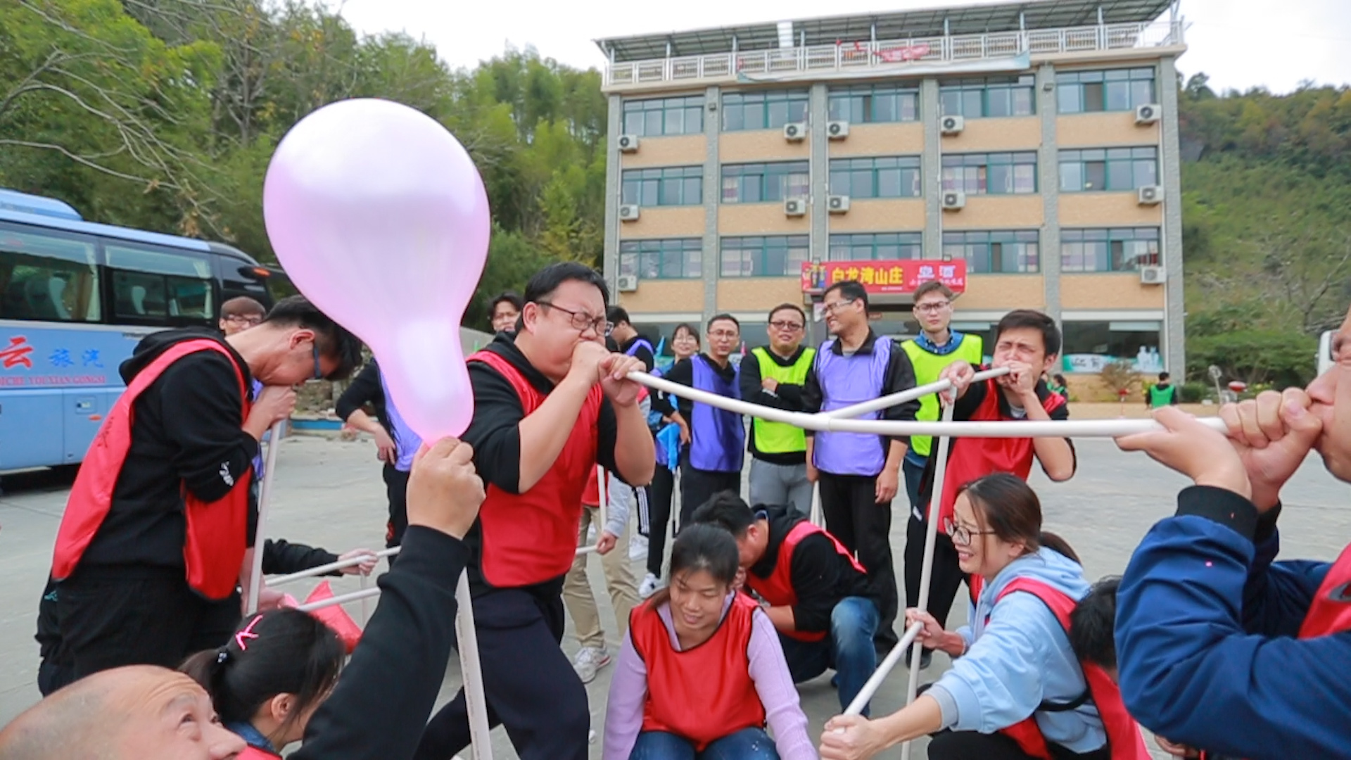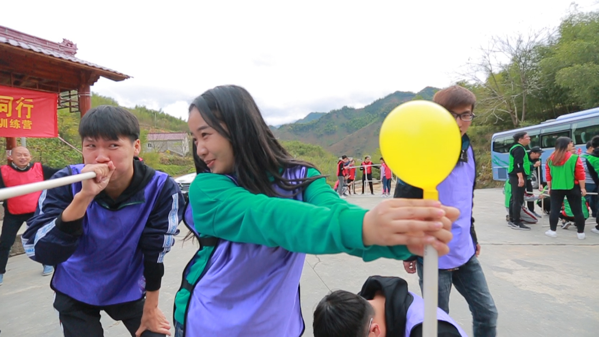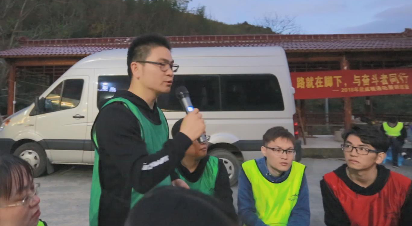經過簡短的破冰活動,大家都融入了訓練的氛圍。四個隊伍分組完成,穿上代表本隊伍顏色的衣服,跟著教練的指引,緊張的拓展訓練便正式開始了。
