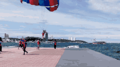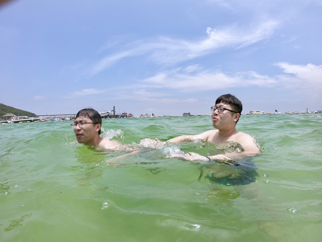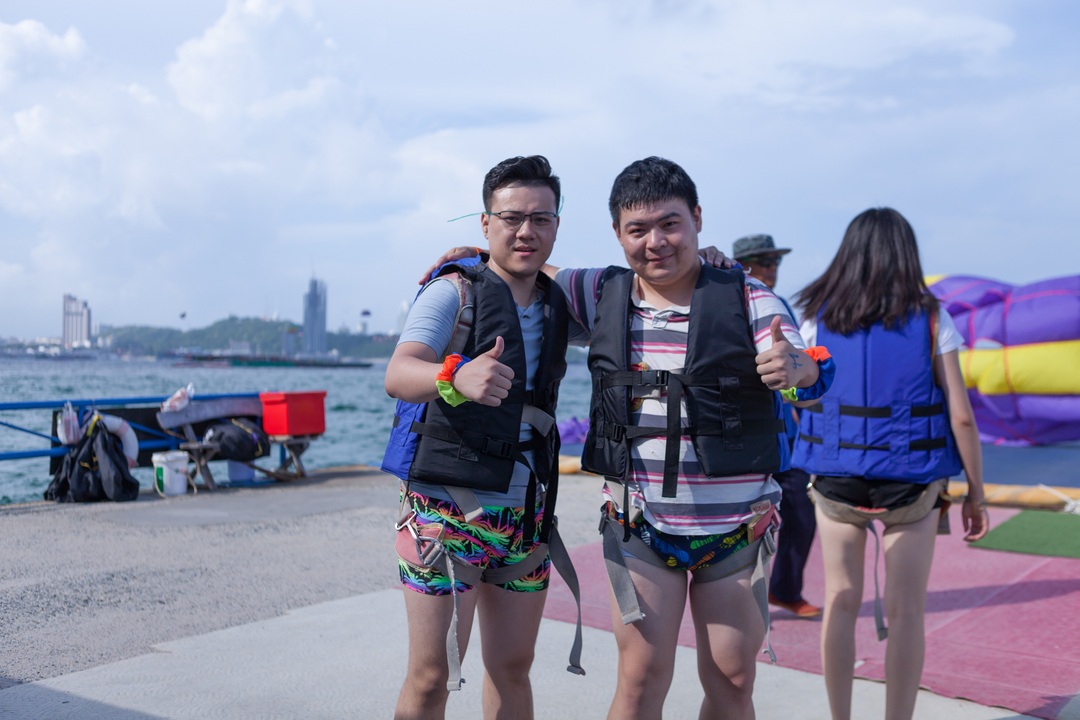 正值泰國的雨季,太陽不太大,海卻很藍。看起來甚是刺激的空中飛人,一些恐高的小伙伴躍躍欲試,在大家的鼓勵下,終于體驗了一把放飛自我。