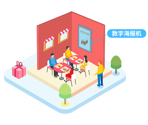 位于餐飲門店內用餐區域,可用于餐飲品牌內容或特色菜品宣傳,節省傳統廣告制作費用高、更換周期長、人工費用高等難題,幫助餐飲商家高效完成宣傳內容的制作及遠程發布及管理工作。